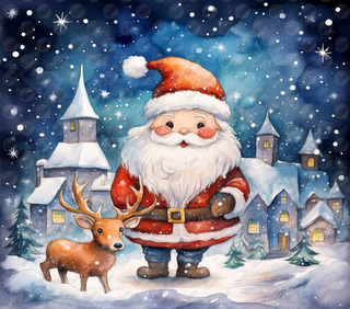 Festive Reindeers and Christmas Trees Holiday Canvas Print